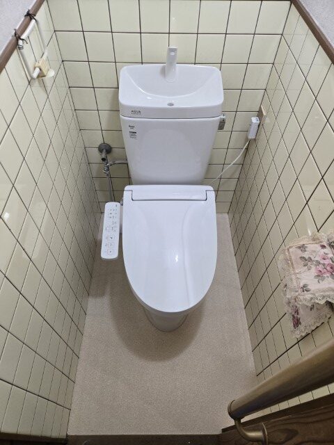 2026/04/07 工事前 工事後 トイレの床が陥没してきたとのご相談をいただき、調査・補修を行いました。タイルを剥がして確認したところ、下地の合板が湿気により腐食している状態でした。 今回は表面だけの補修ではなく、傷んだ根太(床を支える木材)を新しいものに交換。 その上に12mmの合板を2重貼りして強度を十分に確保しました。 仕上げには、お掃除しやすく耐水性の高いクッションフロアを採用! 最後に新しい便器を据え付け、安心・清潔なトイレ空間に生まれ変わりました。 タイル撤去後 下地合板貼り CF下地合板貼り